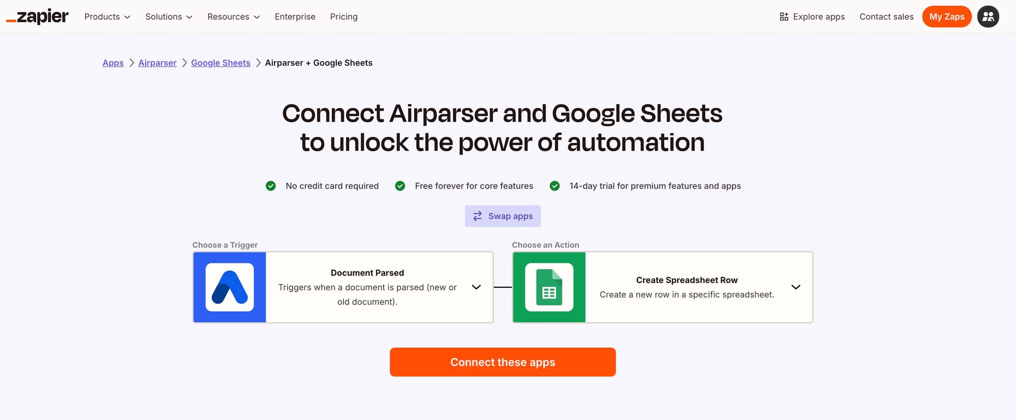 If you need a simple setup, Airparser’s native Sheets integration is the fastest option. But for more complex workflows, Zapier is the way to go.