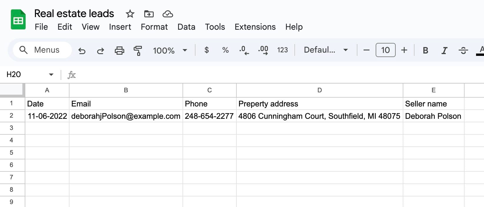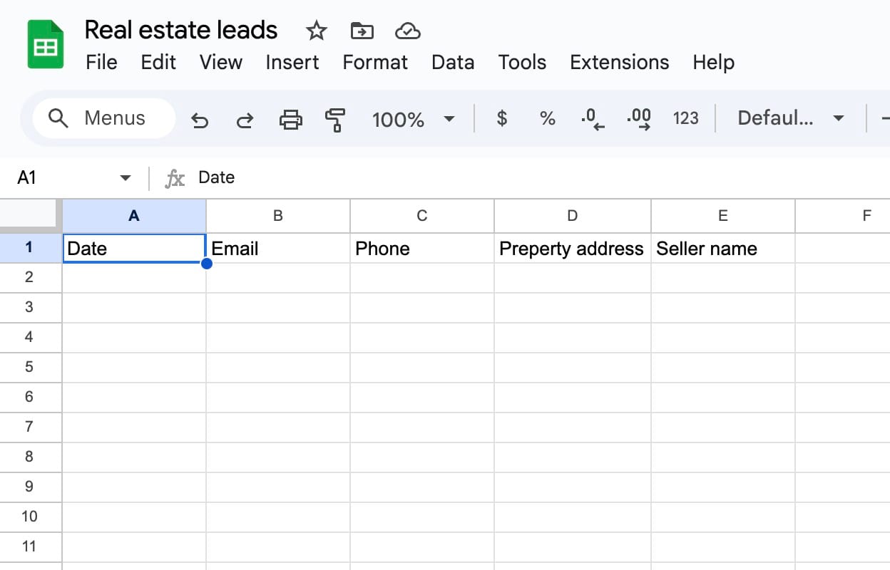 - Spreadsheet → Select your target sheet (e.g., “Real estate leads”)
