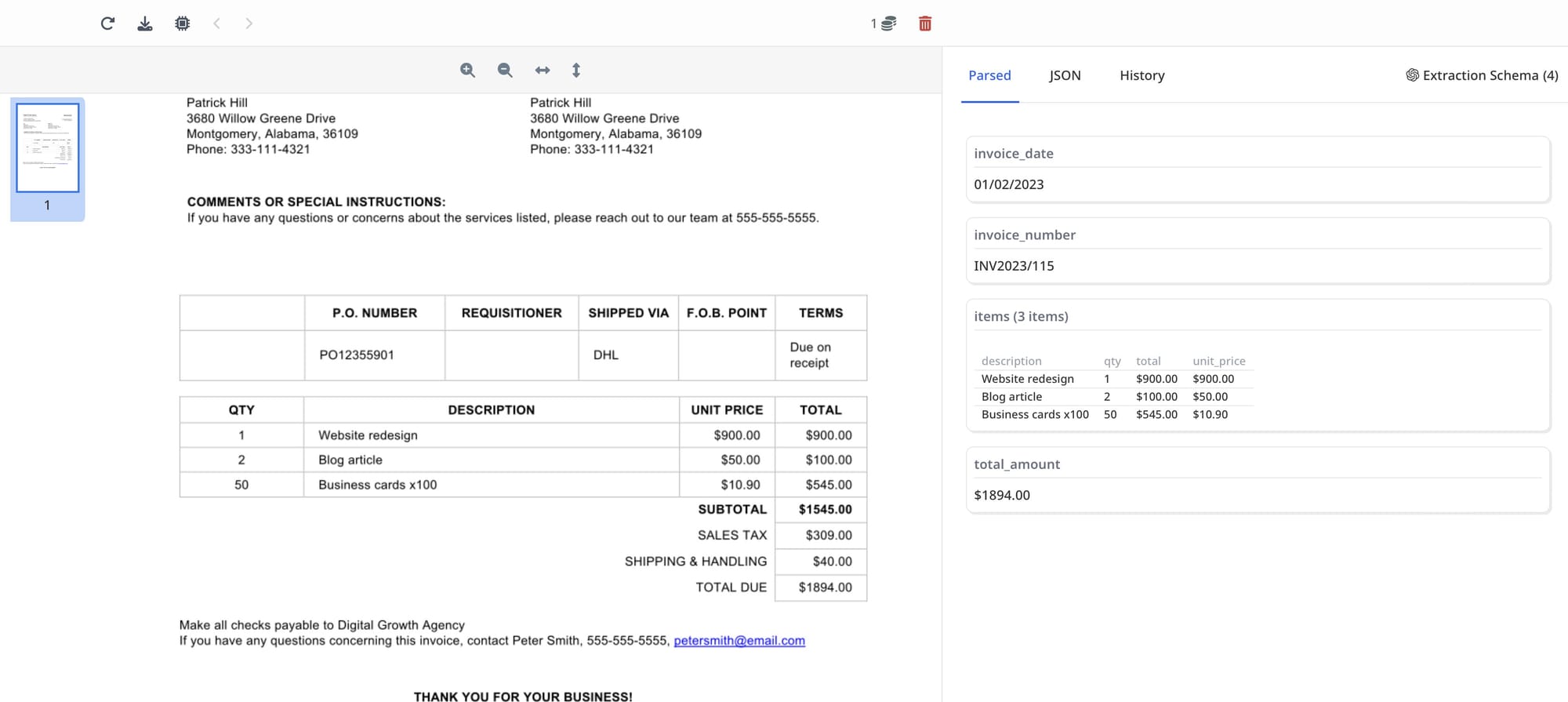 - Upload a document (PDF, email, or image file).