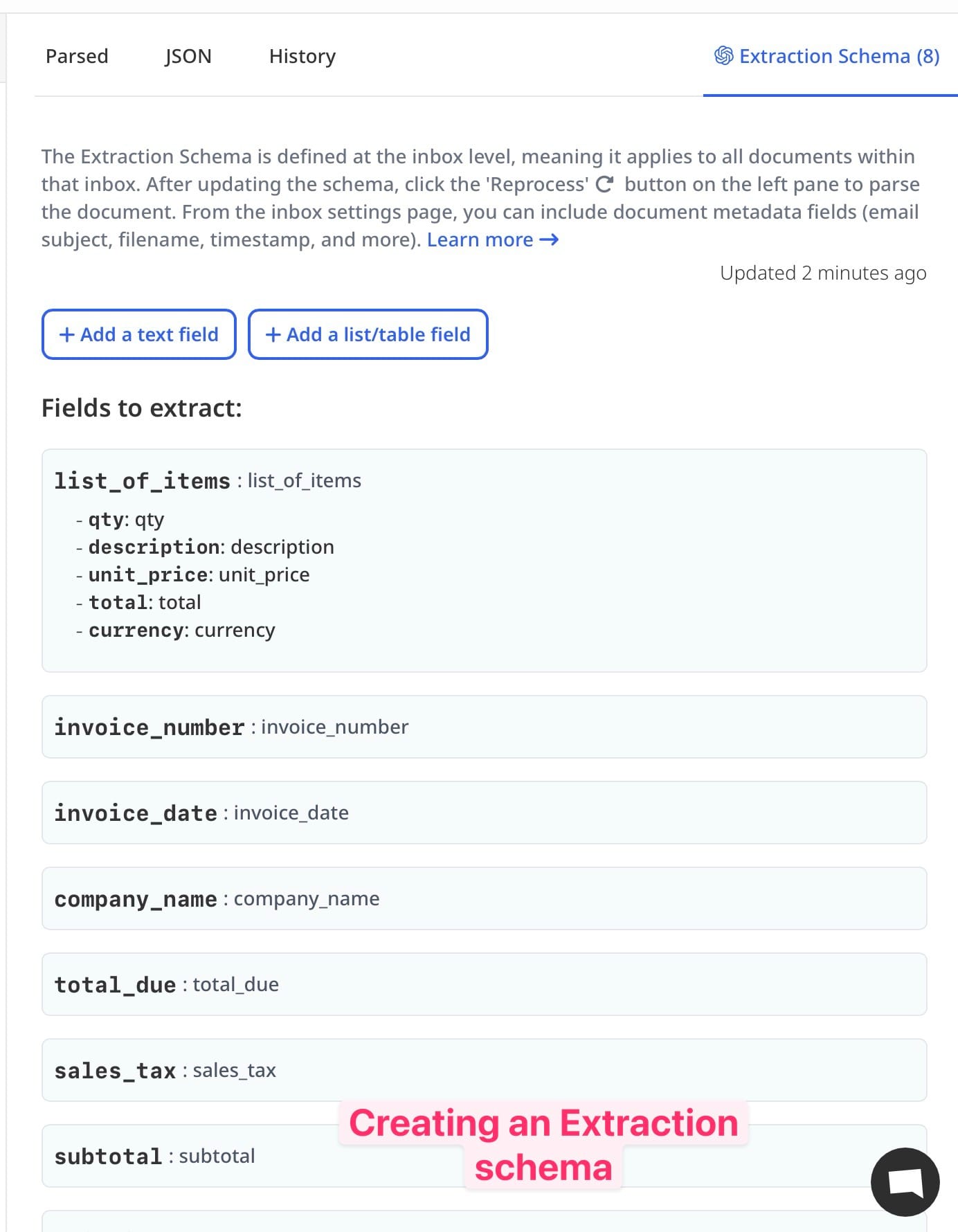 Airparser allows you to select specific fields to extract, such as: